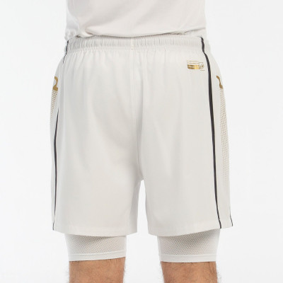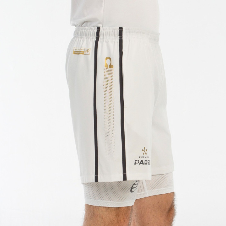 Bermuda en tejido a la plana de poliéster, elástica en dos direcciones. Cuenta con la tecnología Binamic, aplicada a tejidos bielásticos, integrando también el acabado de secado rápido. Diseño compuesto de pantalón con un largo de 42 cm, cinturilla ajustable con cordón, bolsillos y costuras laterales termoselladas, rematadas con cintas ultrasónicas creando un efecto de banda y malla interior de rejilla elástica.