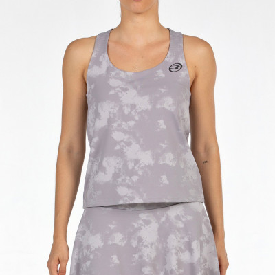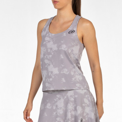 Top ajustado estampado tono sobre tono de nuestra línea Padel is my Power en tejido de poliéster con elastán y tecnología drynamic que ayuda a un secado rápido y la confortabilidad. Tiene sobre los hombros un estampado a rayas tono sobre tono en high density, una detalle en la espalda multiperforada que mejora la transpiración y logos de goma en delantero y espalda.