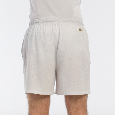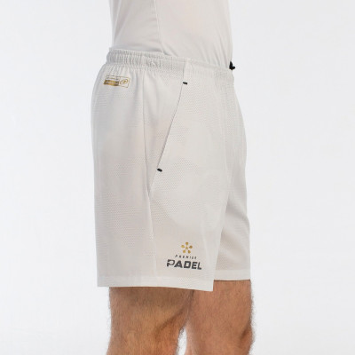 Short en tissu plat en polyester, élastique dans les deux sens. Il dispose de la technologie Binamic, appliquée aux tissus bi-élastiques, intégrant également la finition à séchage rapide. Modèle composé d'un pantalon d'une longueur de 42 cm, taille réglable avec cordon de serrage, poches et jockstrap intérieur en maille élastique. Décoré avec des graphismes Premier Padel.