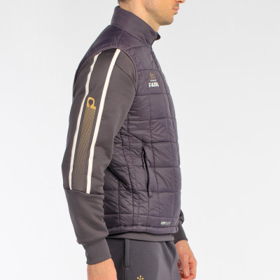 Designed with a central zip, side pockets with zips, armholes finished with an elastic band and adjustable bottom with rubber and drawstrings. Finished with a personalized ribbon and decorated with Premier Padel graphics.