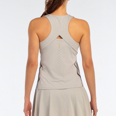 Design elegante delle spalline, silhouette aderente con dorso a vogatore, cuciture termosaldate rifinite con nastri ad ultrasuoni sui lati e perforazioni al laser sul retro, aiuta la traspirazione. Decorato con grafica Premier Padel.
