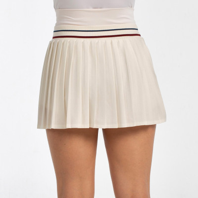 Stile e movimento vanno di pari passo in questa gonna pensata per brillare dentro e fuori dal campo. Un capo pensato per elevare le tue prestazioni in campo senza rinunciare allo stile. Pensata per accompagnarti in ogni movimento con il massimo comfort, la sua costruzione tecnica e i dettagli funzionali fanno la differenza partita dopo partita. Gonna plissettata con fodera in rete della nostra linea Timeless, realizzata con filati Repreve e firmata dalla giocatrice Gemma Triay, in jersey testurizzato di poliestere riciclato. Presenta una doppia cintura a costine tricolore con coulisse per la regolazione e una cintura singola in poliestere con elastan, con logo ricamato sul davanti.
